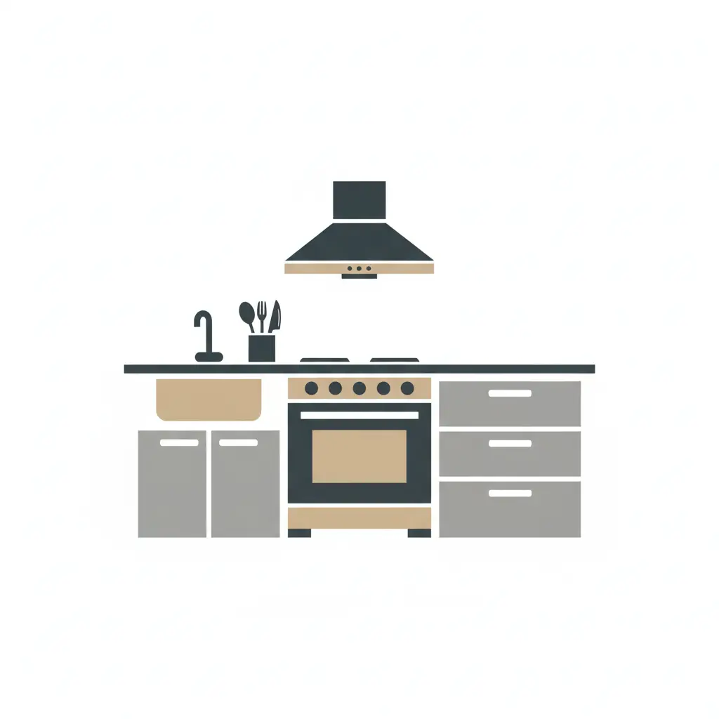 Plně zařízená kuchyňská linka se všemi spotřebiči pro vaření.